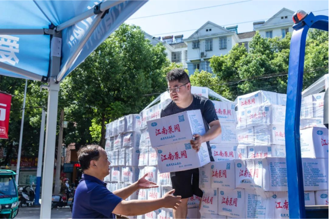 8月2日上午,安徽江南泵閥集團有限公司向涇縣“愛心清涼補給站”捐贈了300箱礦泉水,以實際行動向涇縣的戶外工作者致敬,助力涇縣新時代文明實踐活動。