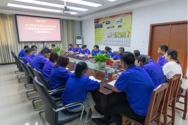 安徽江南泵閥集團有限公司董事長吳同茂、黨支部書記戴高巖、全體黨員、入黨積極分子及職工代表聆聽宣講。