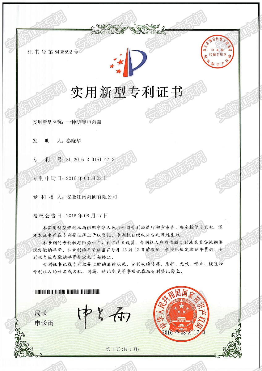 安徽江南泵閥有限公司榮獲防靜電耐腐蝕化工泵泵蓋專利,主營:氟塑料泵,不銹鋼泵,耐腐蝕化工泵,品質(zhì)卓越,行業(yè)領(lǐng)跑企業(yè),科研生產(chǎn)型企業(yè)20年鑄就行業(yè)輝煌!...