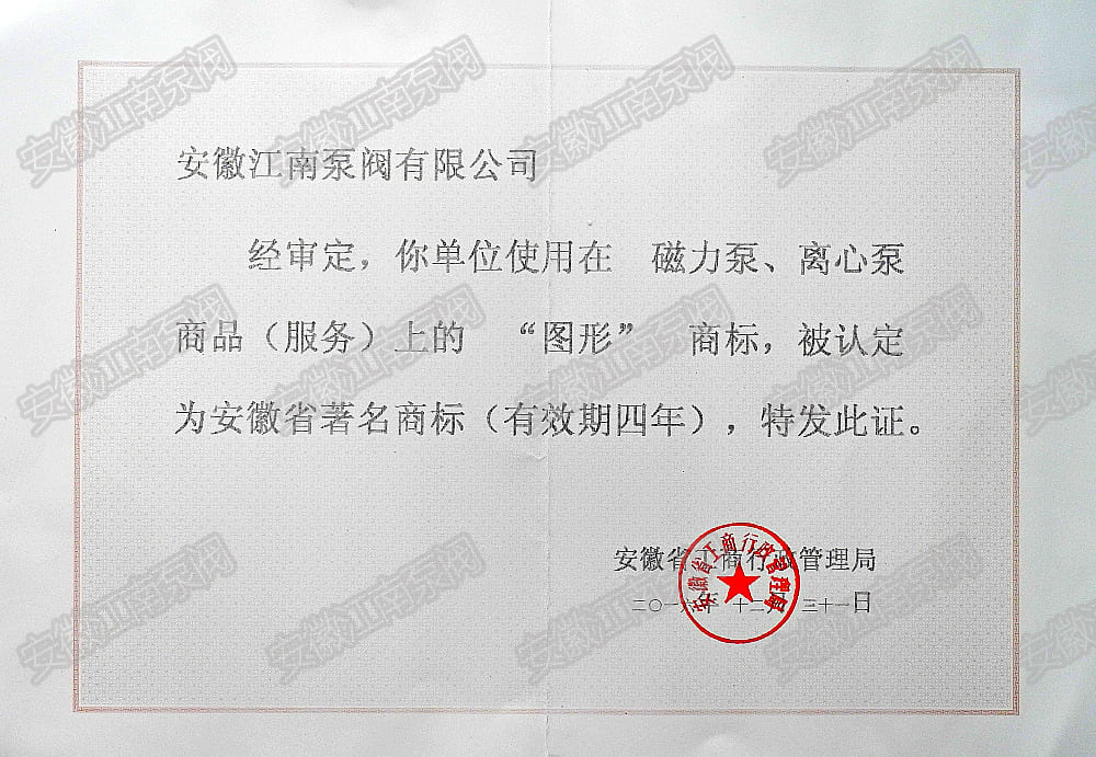 安徽江南泵閥有限公司榮獲磁力泵,離心泵宣城市知名商標,主營:氟塑料泵,不銹鋼泵,耐腐蝕化工泵,品質卓越,行業(yè)領跑企業(yè),科研生產型企業(yè)20年鑄就行業(yè)輝煌!...